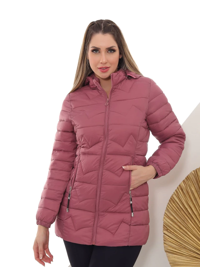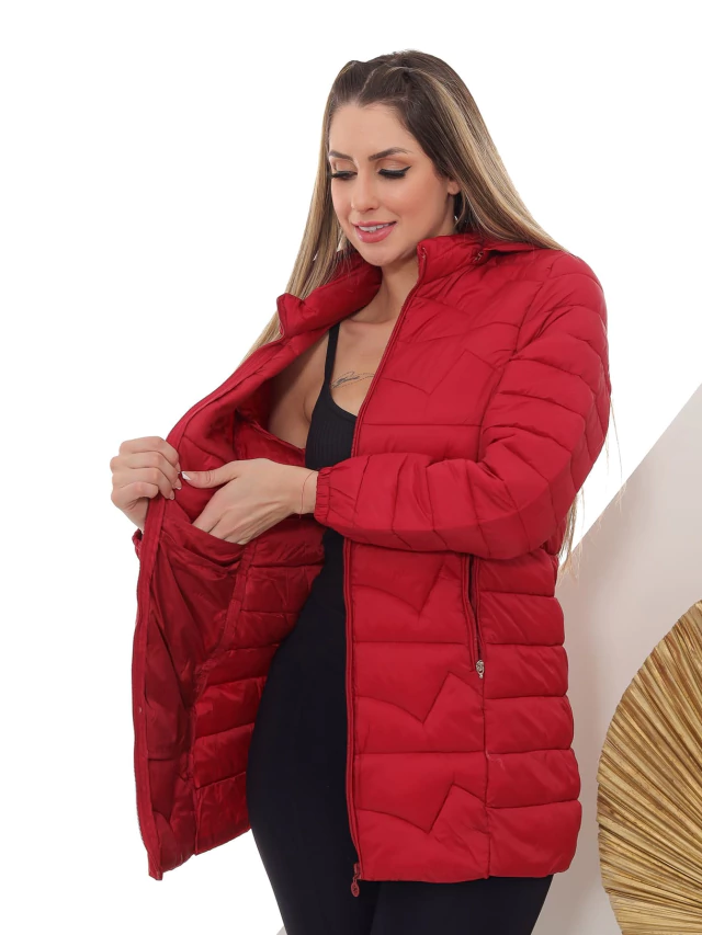Encaixe do capuz em zíper podendo ser usado de duas formas: com ou sem capuz, fechamento também em zíper nos bolsos e na frente, possui elástico no punho para manter a manga no lugar e evitar a passagem do vento frio